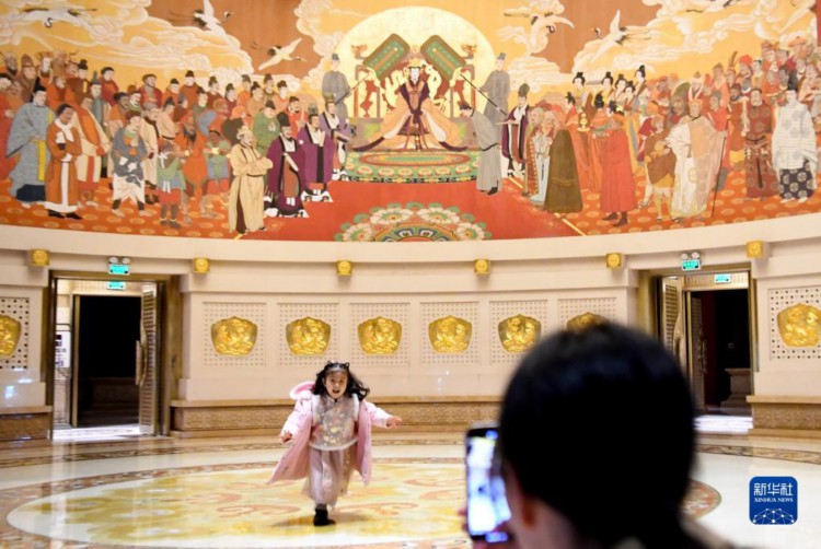 1月13日,女儿艾润在隋唐洛阳城国家遗址公园天堂景区内游玩。 新华社记者 郝源 摄