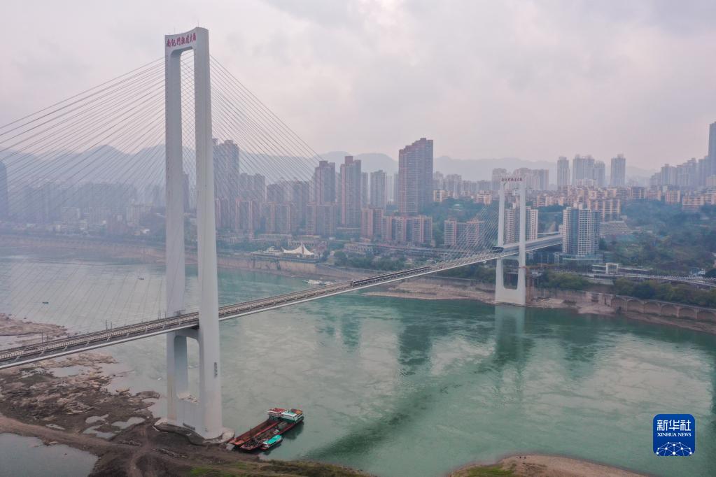 1月18日,重庆轨道交通10号线列车通过南纪门轨道大桥(无人机照片)。 当日,重庆轨道交通10号线二期(鲤鱼池至后堡)项目正式开通运营。该线路的贯通运营,将形成串联重庆两江新区、渝北区、江北区、渝中区、南岸区的南北骨干道路,有利于完善城市轨道交通线网格局,改善主城区交通通行环境。 新华社记者 唐奕 摄