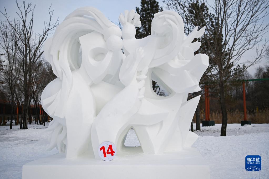 1月18日拍摄的第二十九届全国雪雕比赛一等奖作品《我的新娘》。 当日,在“冰城”哈尔滨市太阳岛雪博会园区举行的第二十九届全国雪雕比赛落幕。 新华社记者 谢剑飞 摄