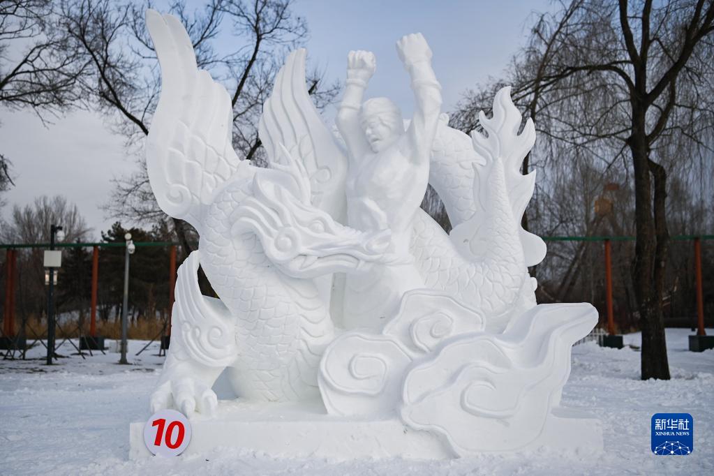 1月18日拍摄的第二十九届全国雪雕比赛二等奖作品《黑龙传说》。 当日,在“冰城”哈尔滨市太阳岛雪博会园区举行的第二十九届全国雪雕比赛落幕。 新华社记者 谢剑飞 摄