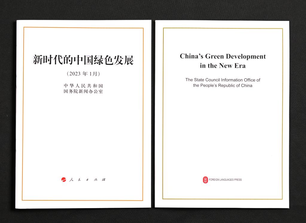这是1月19日发布的中、英文版《新时代的中国绿色发展》白皮书。 新华社记者 李贺 摄