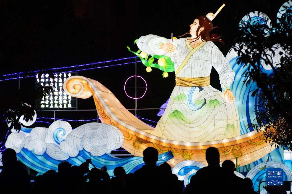 1月19日,游客在宜昌市新春灯会上观赏彩灯。 当日,湖北省宜昌市新春灯会在宜昌世界和平公园开幕,浓浓的节日氛围吸引了不少市民前来游览。 新华社记者 肖艺九 摄