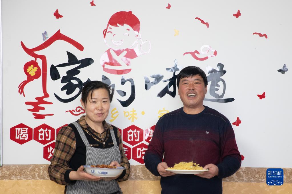 1月12日,在黑龙江省漠河市北红村农家乐,任金红(右)和妻子准备给游客上菜。 新华社记者 张涛 摄