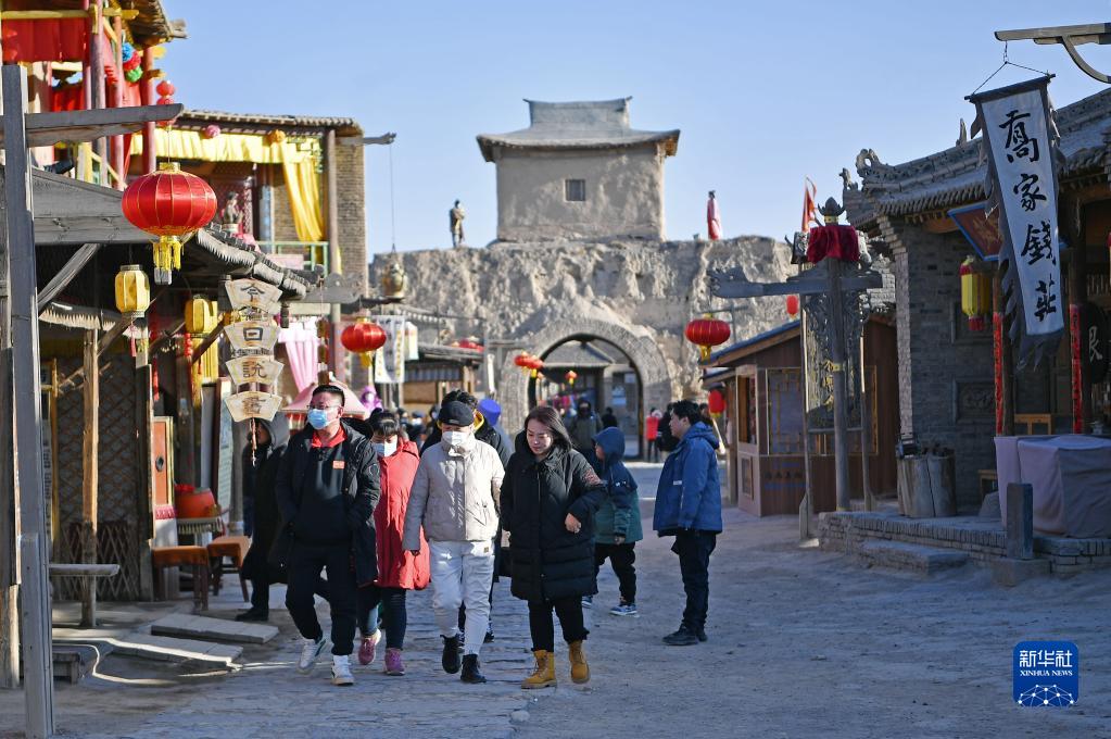 1月24日,游客在宁夏镇北堡西部影城参观游玩。