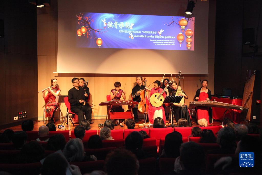 1月25日晚,中法两国演奏家在巴黎中国文化中心共同演绎“弦音雅韵”中国民族音乐会。 “弦音雅韵”中国民族音乐会当晚在法国巴黎举行。这是巴黎中国文化中心举办的2023“欢乐春节”系列活动之一。 新华社记者 唐霁 摄