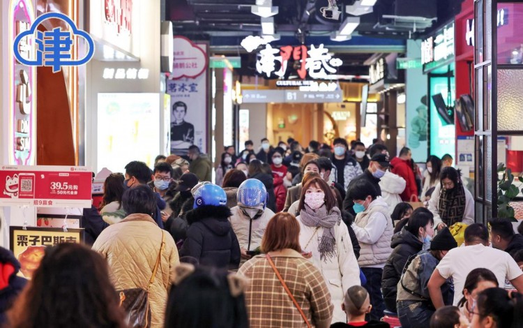 由节前全市19场年货大集开场,金街、古文化街等街区延续了民俗节庆活动的热情,金街“大鼓迎新春“”醒狮纳福”等吸引大批人群驻足围观,蜜雪冰城、耳朵眼炸糕等街边特色店铺多是市民游客排队购买,街区日均客流量保持30万人次,完全恢复至往年水平。古文化街、水上公园推出新春文化庙会,意风区举办灯光秀、投影秀及仿古铛铛车等游娱项目,客流量均一度突破最大承载量。佛罗伦萨小镇外地客流爆满,销售额和客流量同比分别增长1倍和1.8倍。同时宁河区在天尊阁举办文化庙会,蓟州区在州河湾广场举办马戏表演,武清区在体育中心南广场举办新春庙会,为本地居民提供消费去处。