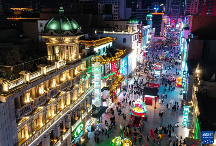 1月25日,市民在沈阳中街商业街上休闲购物(无人机照片)。