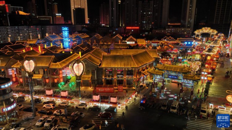 1月23日,市民在沈阳新春皇寺庙会游玩(无人机照片)。