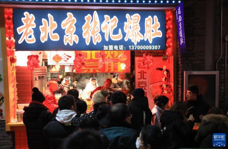 1月23日,市民在沈阳新春皇寺庙会品尝美食。