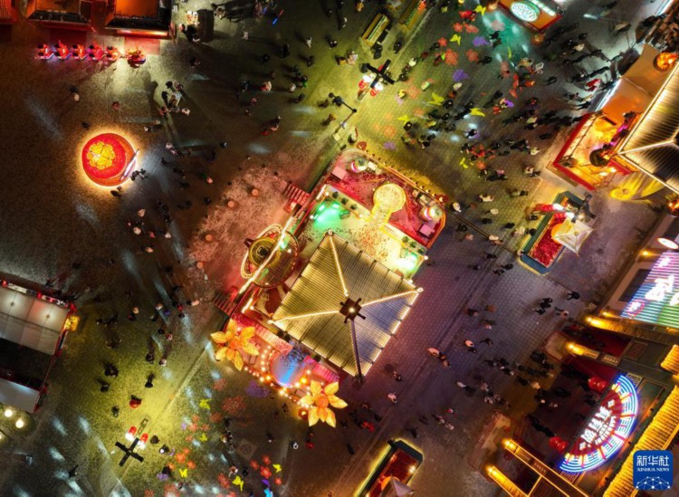 1月23日,市民在沈阳新春皇寺庙会游玩(无人机照片)。