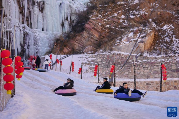 1月27日,游客在天河山景区冰雪游乐区内游玩。 正月里,位于太行山深处的河北省邢台市天河山景区迎来众多游客。人们脚踏冰雪,在这里体验雪地游乐设施,欣赏冰瀑美景。 近年来,邢台市大力开发太行深山区冬季旅游资源,大力发展冰雪经济,有效填补当地冬季旅游短板,同时促进周边民宿、餐饮等相关产业发展,带动山区群众增收,让冬季的太行山“热”起来。 新华社记者 牟宇 摄
