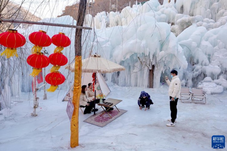 1月27日,游客在天河山景区冰雪游乐区内拍照留念。 正月里,位于太行山深处的河北省邢台市天河山景区迎来众多游客。人们脚踏冰雪,在这里体验雪地游乐设施,欣赏冰瀑美景。 近年来,邢台市大力开发太行深山区冬季旅游资源,大力发展冰雪经济,有效填补当地冬季旅游短板,同时促进周边民宿、餐饮等相关产业发展,带动山区群众增收,让冬季的太行山“热”起来。 新华社记者 牟宇 摄