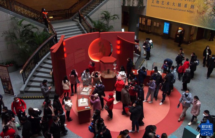 参观者在上海博物馆大堂里观看兔年迎春展(1月22日摄)。新华社记者 任珑 摄