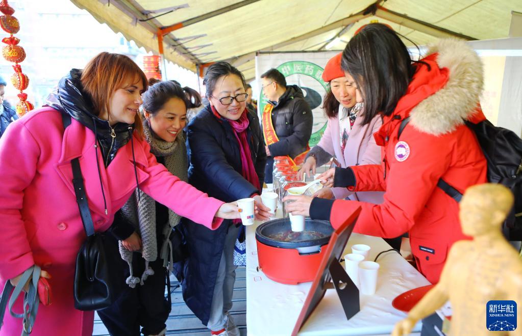 1月28日,人们在比利时纳慕尔品尝“养生茶”。 当日,比利时纳慕尔市举办“中国春节游园庙会”活动。 新华社记者 潘革平 摄 |