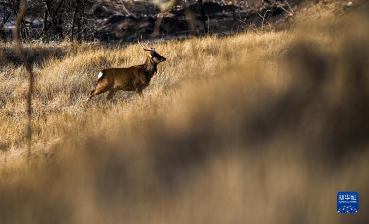 1月29日,一只马鹿在滦河源国家森林公园内觅食。新华社记者 刘懿德 摄