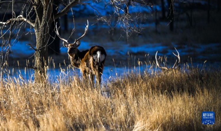 1月29日,一只马鹿在滦河源国家森林公园内觅食。新华社记者 连振 摄