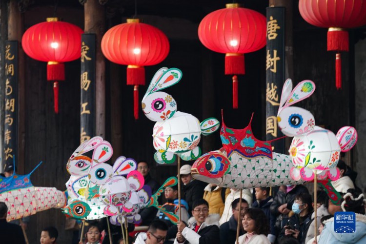 兔年新春,在安徽省黄山市黟县宏村,当地举行的花灯研习班邀请游客共同制作兔子形状花灯。傍晚时分,五颜六色的“兔灯”在古村中点亮,游客在“闹花灯”中体验徽州年俗。