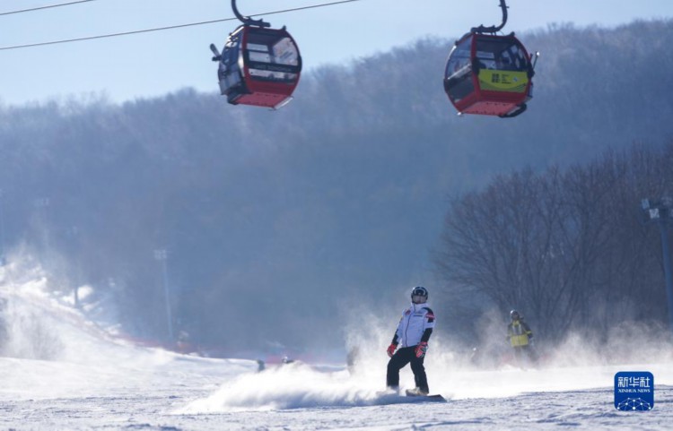 1月30日,游客在吉林市万科松花湖度假区滑雪。