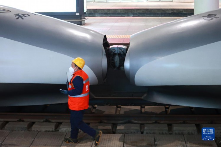 1月29日,“草鞋班”的工人穿着草鞋在轨道边行走。