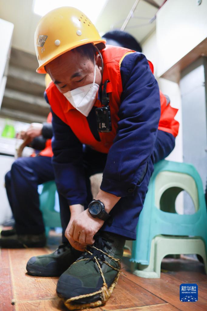 1月29日,“草鞋班”的工人在开始工作前穿上草鞋。