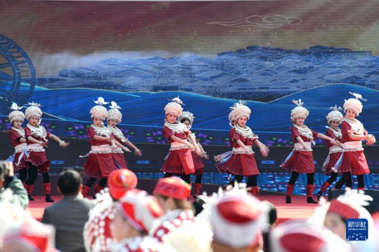 1月31日,演员在贵州省黔东南苗族侗族自治州黄平县谷陇镇表演节目。 当日,在贵州省黄平县谷陇镇,26个村(居)的千余名苗族同胞身着银饰盛装,跳板凳舞、吹芦笙、唱苗歌,载歌载舞喜迎元宵佳节。 新华社发(王超摄)