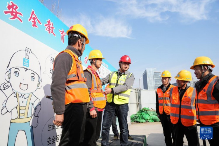 1月31日,在济南浪潮智能计算产业园建设现场,中建三局技术人员召集施工班组上好“安全生产复工第一课”。 春节假期刚过,山东济南重大工程项目迎来开工复工热潮。建设者们鼓足干劲,奋力实现新年重点项目建设“开门红”。 新华社记者 朱峥 摄