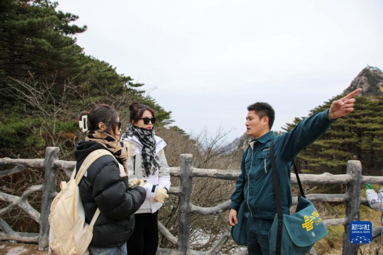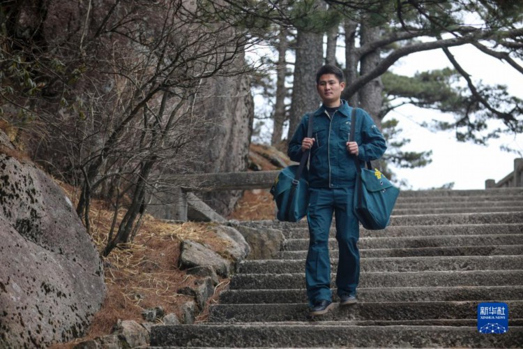 2月1日,谢菲俊在投递邮件的路上给游客指路。 作为安徽黄山风景区内唯一的邮政步班投递员,“90后”小伙谢菲俊每天要背负几十斤的邮包在平均海拔1300多米的“云端”徒步12公里,上下台阶约12000级,将各种邮件送达33个投递点。由于山高路远,又是安徽省海拔最高的投递段道,谢菲俊被大家亲切地称为“云端信使”。 在曲折险峻的邮路上,谢菲俊7年来投递信件12.26万件、包裹6.78万件、报刊184.6万份,2022年荣获“全国五一劳动奖章”。 邮路上七年如一日的坚守,谢菲俊从来没有退缩过,他的邮包里装的不仅是邮件,更是一份沉甸甸的责任,“只要有人在,邮件就会抵达!” 新华社记者 曹力 摄