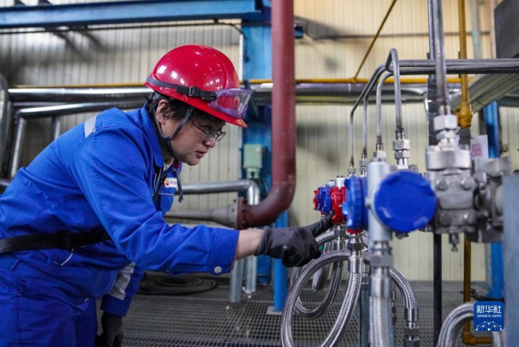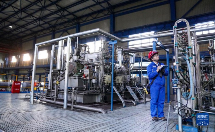 李艳在厂区内的装置上巡检(2022年11月8日摄)。 新华社记者 颜麟蕴 摄