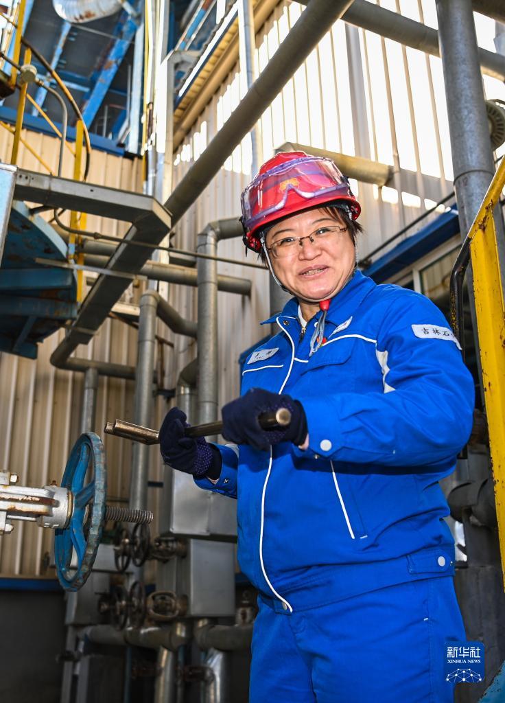 李艳在中国石油吉林石化公司炼油厂车间内巡检(2022年11月8日摄)。 新华社记者 颜麟蕴 摄