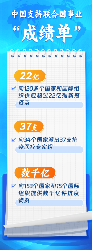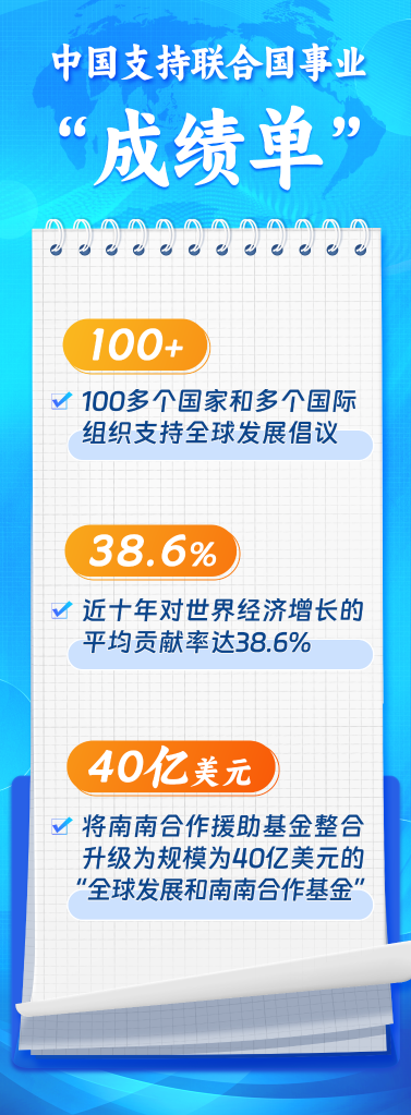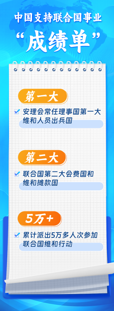 作为联合国安理会常任理事国和第一个在《联合国宪章》上签字的国家,中国始终捍卫宪章的宗旨和原则,始终维护联合国在国际事务中的核心作用,坚定不移做世界和平的建设者、全球发展的贡献者、国际秩序的维护者。梳理相关的事实与数据,人们可以看到中国支持联合国事业清晰斐然的“成绩单”。