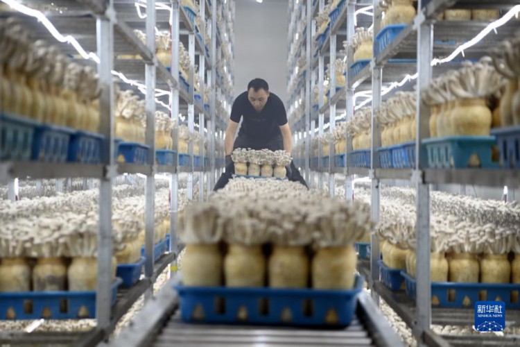 在张掖市甘州区的一家食用菌企业,工作人员采收成熟的鹿茸菇(2月1日摄)。 春节假期过后,甘肃省张掖市的各类企业开足马力抓生产,加紧完成产品订单。 新华社记者 范培珅 摄