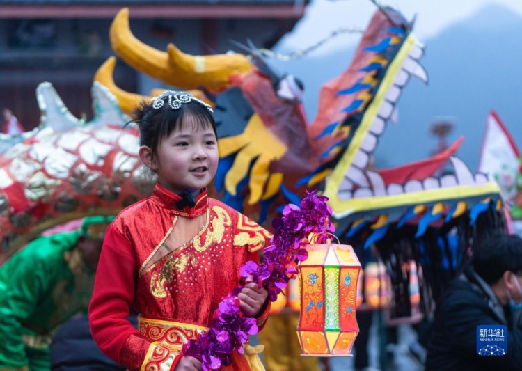 当日,浙江省杭州市淳安县里商乡举行2023元宵节花灯巡游,为当地山乡增添了热闹的元宵氛围。