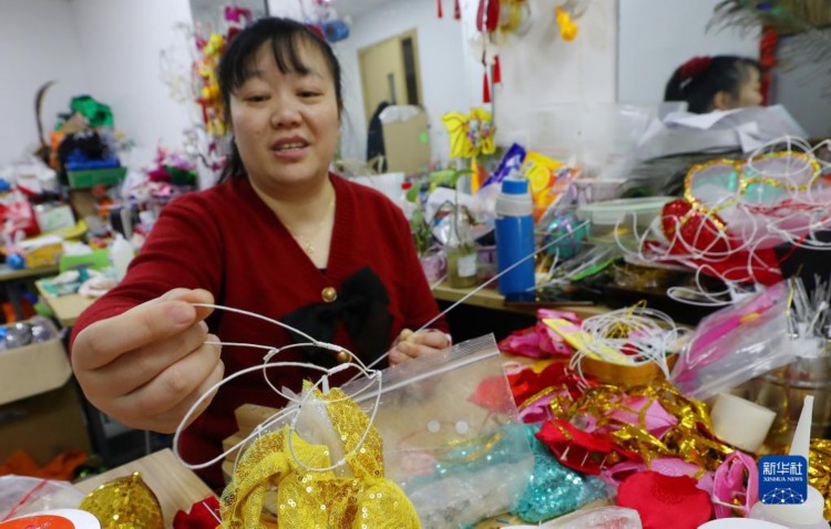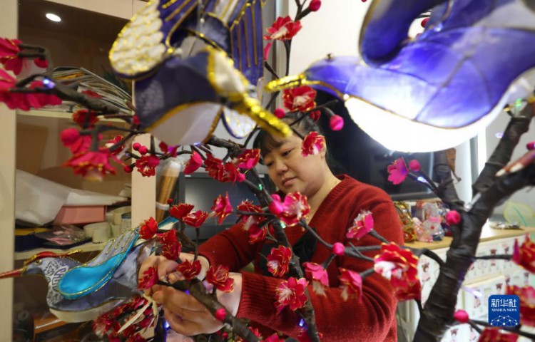 2月1日,龚智瑜整理“红腹锦鸡”造型灯彩。 元宵佳节前夕,“上海灯彩”制作技艺黄浦区代表性传承人龚智瑜和工作室的同事忙于元宵灯彩的展示布置工作。今年元宵节,工作室几十盏灯彩将为申城元宵佳节增光添彩。 “上海灯彩”以精致细腻的立体动植物为特色,从花瓣花蕊到鸟的羽毛、鱼的鳞片都灵动逼真。 新华社记者 方喆 摄