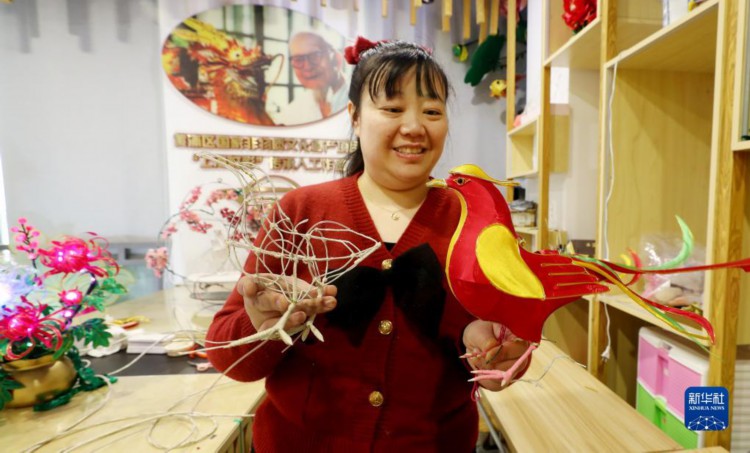 2月1日,龚智瑜展示鸟类灯彩的骨架和裱糊成品。 元宵佳节前夕,“上海灯彩”制作技艺黄浦区代表性传承人龚智瑜和工作室的同事忙于元宵灯彩的展示布置工作。今年元宵节,工作室几十盏灯彩将为申城元宵佳节增光添彩。 “上海灯彩”以精致细腻的立体动植物为特色,从花瓣花蕊到鸟的羽毛、鱼的鳞片都灵动逼真。 新华社记者 方喆 摄