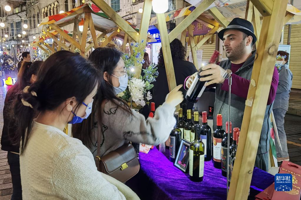 2月3日,格鲁吉亚摊主在海口骑楼老街售卖本国特色商品。 元宵节来临之际,海口骑楼老街举办元宵逛大集活动,外国特色摊位和海南非遗特色文创摊位的摊主各显身手。中西文化碰撞交流的市集给市民和游客的元宵节带来别样体验。 新华社记者 周慧敏 摄 |