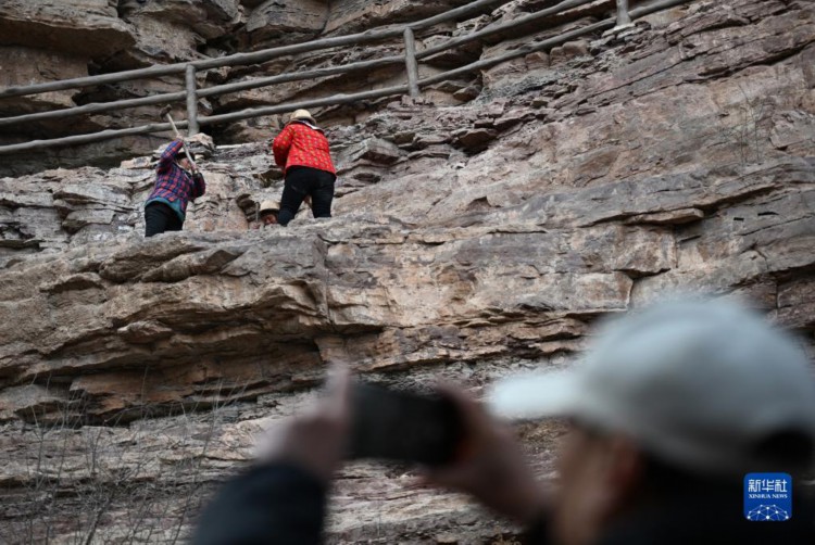 2月5日,游客在红旗渠景区游览。 当日是农历正月十五元宵节,在河南安阳林州市,不少市民选择到红旗渠景区参观游览,感受红色文化。 新华社记者 兰红光 摄