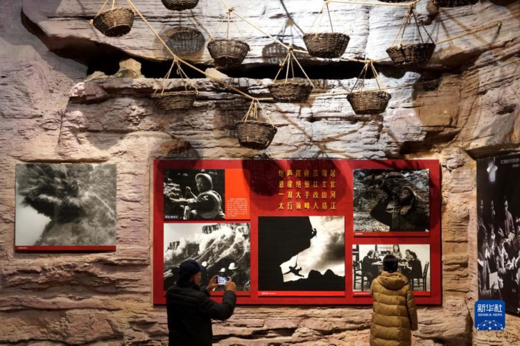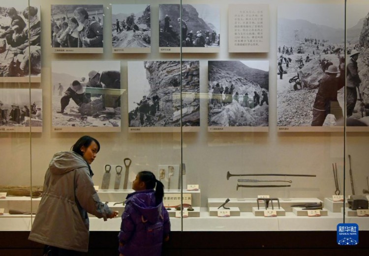 2月5日,游客参观红旗渠纪念馆。 当日是农历正月十五元宵节,在河南安阳林州市,不少市民选择到红旗渠景区参观游览,感受红色文化。 新华社记者 李安 摄