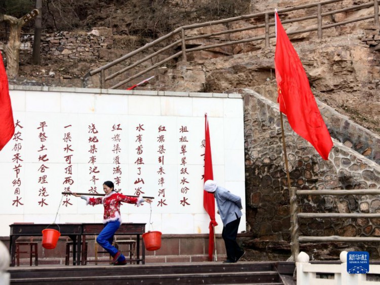 2月5日,演员在红旗渠景区的情景演出中表演。 当日是农历正月十五元宵节,在河南安阳林州市,不少市民选择到红旗渠景区参观游览,感受红色文化。 新华社记者 兰红光 摄