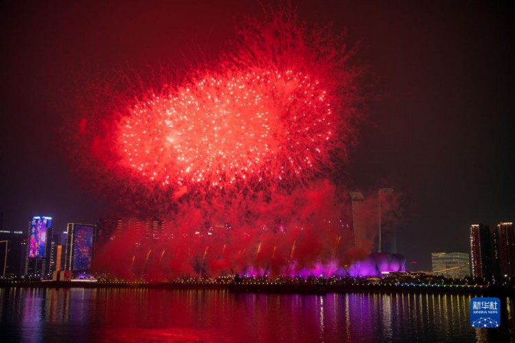 当晚,“迎亚运、庆元宵”烟花灯光秀在浙江杭州举行。