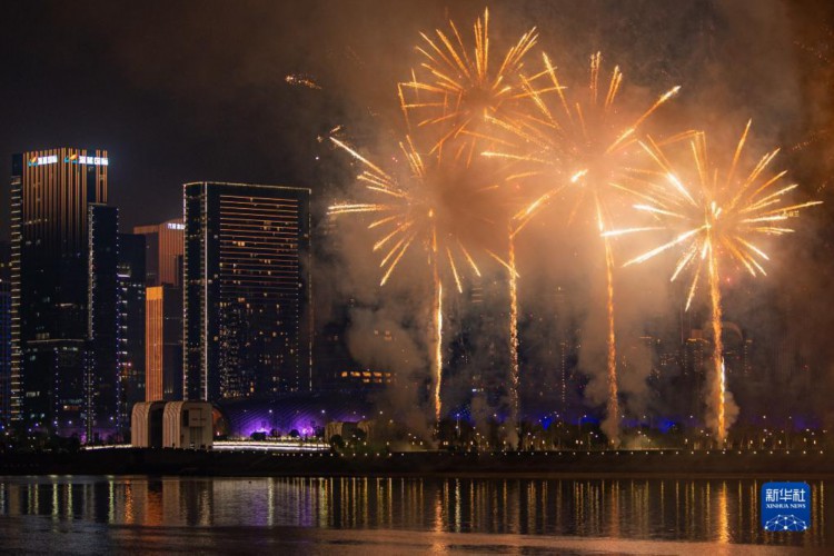 当晚,“迎亚运、庆元宵”烟花灯光秀在浙江杭州举行。