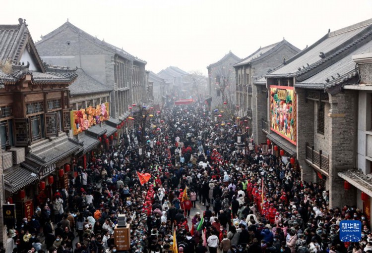 当日是农历正月十六,在河南省浚县举行的正月古庙会上,几十支社火团队轮番表演,踩高跷、扭秧歌、耍狮子,锣鼓喧天,热闹非凡,形成一道富有特色的中原文化景观。河南省浚县的正月古庙会已有1600多年历史,有“华北第一庙会”之称,被誉为民俗文化的“活化石”,是中国民间文化保护工程项目、国家级非物质文化遗产。