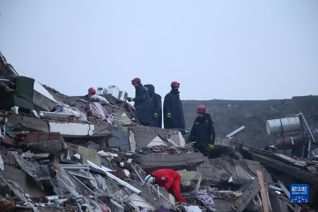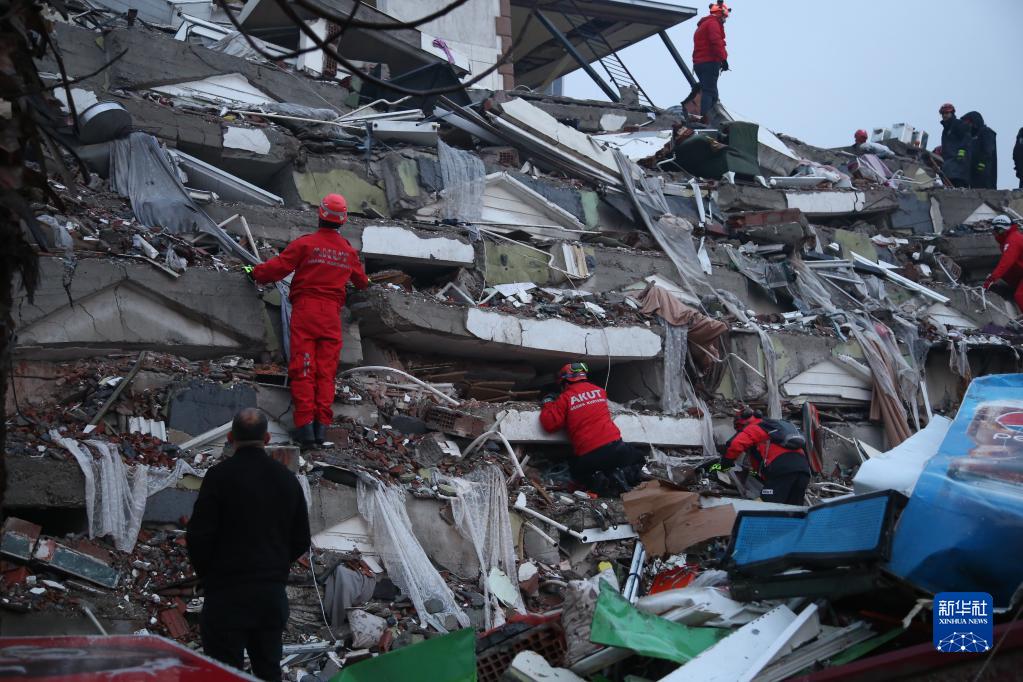 2月7日,在土耳其南部卡赫拉曼马拉什市市中心,救援人员在搜救。卡赫拉曼马拉什市是本次地震重灾区卡赫拉曼马拉什省省会,是遭受地震破坏最为严重的城市之一。 土耳其南部靠近叙利亚边境地区6日凌晨发生强烈地震。据土耳其灾难和应急管理署7日最新消息,此次强震已在土耳其境内导致3549人死亡、22168人受伤,超过5575座建筑物在地震中被毁。 新华社记者 李振北 摄