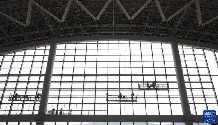 眼下,由中铁建工集团承建的江苏南沿江铁路江阴站站房装饰装修作业有序推进。