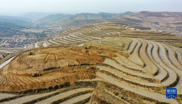 2月7日,工人操作挖掘机、推土机在宁夏固原市西吉县硝河乡苏沟村平整土地。 早春时节,多台大型机械设备在宁夏固原市西吉县的梯田上为建设高标准农田忙碌作业。今年宁夏全区计划新建和改造高标准农田93.7万亩,重点向西海固地区倾斜,其中西吉县今年计划建设高标准农田25万亩。 截至2022年年底,宁夏已建成高标准农田970万亩,超过全区耕地面积的一半。 新华社记者 冯开华 摄
