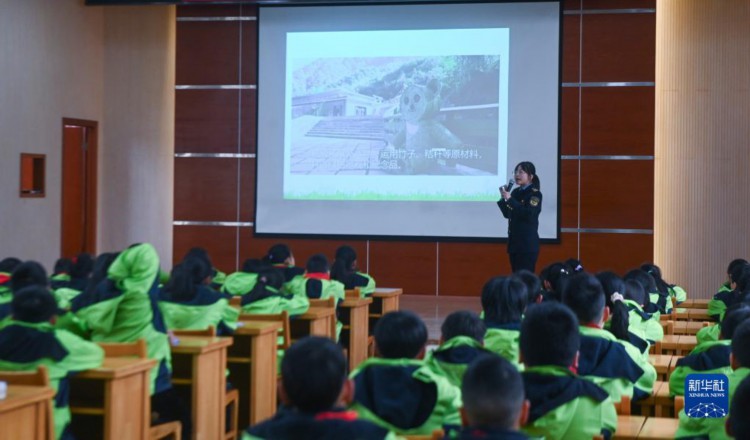 2月7日,在杭州市临安区潜川镇的潜川小学,杭州市生态环境局临安分局的党员志愿者向学生普及“无废城市”的概念。 当日,杭州市生态环境局临安分局在杭州市临安区潜川小学开展以“无废知识进校园,逐梦绿色向未来”为主题的开学第一课,普及低碳环保、资源循环利用的“无废城市”及“无废校园”概念。 新华社记者 徐昱 摄 |