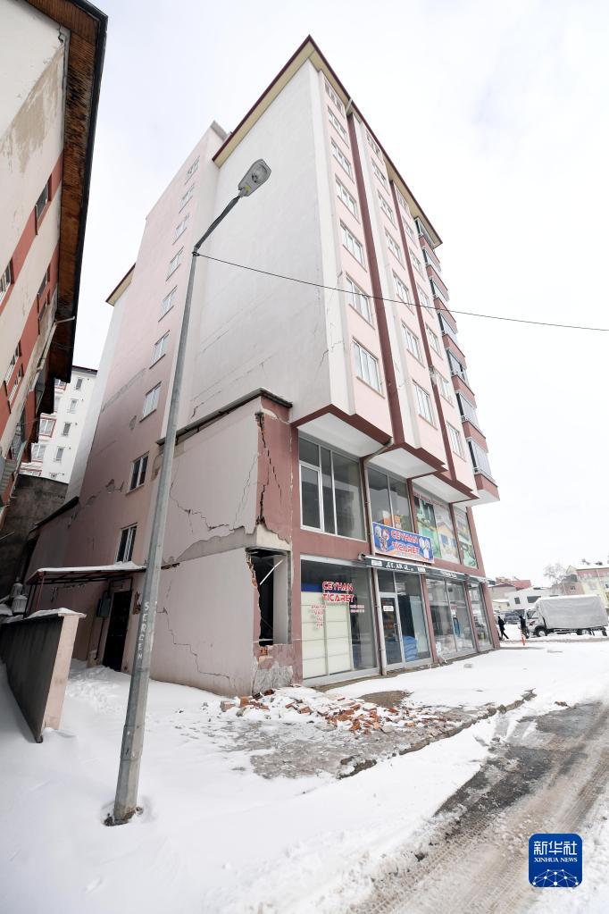 这是2月7日在土耳其卡赫拉曼马拉什省的埃尔比斯坦地区拍摄的地震中受损的建筑物。