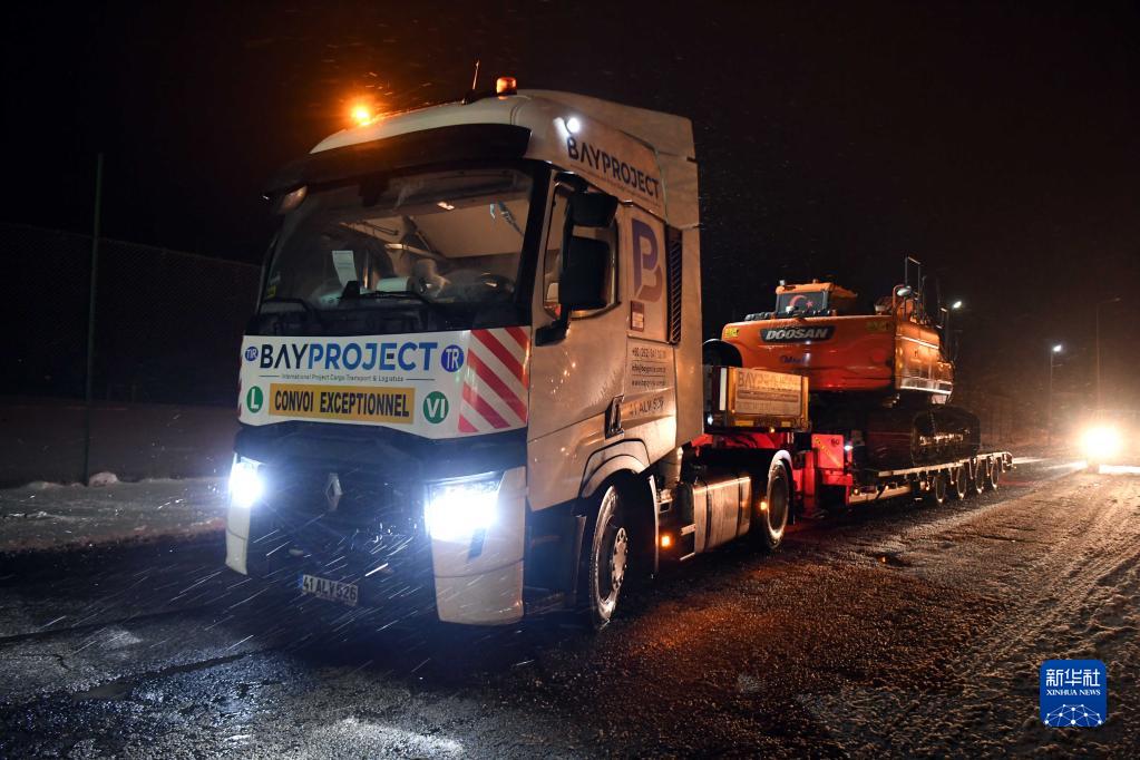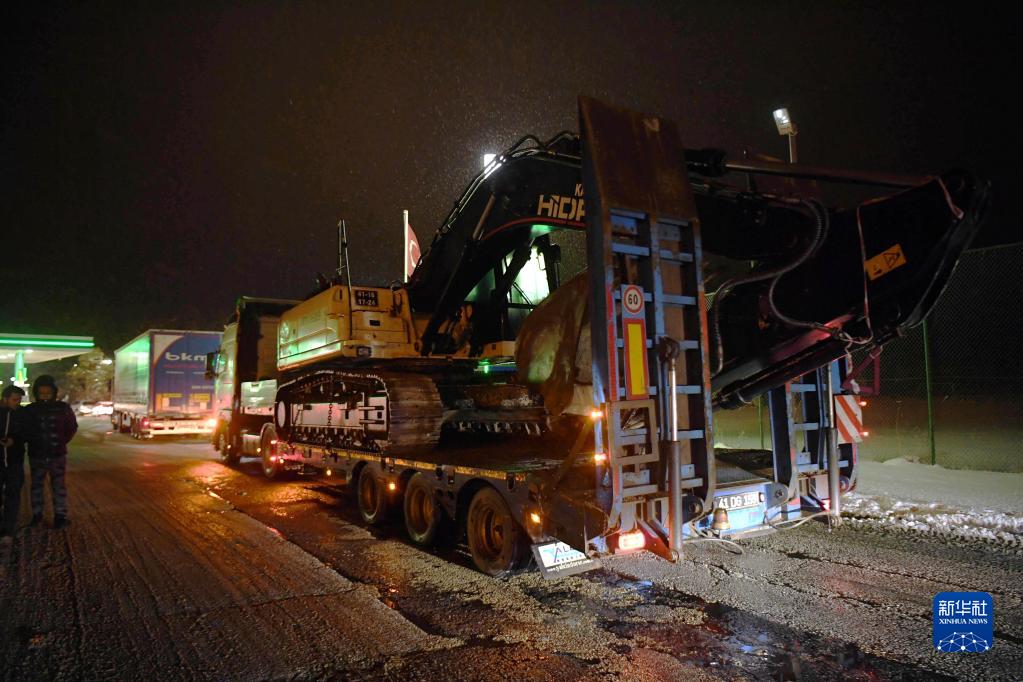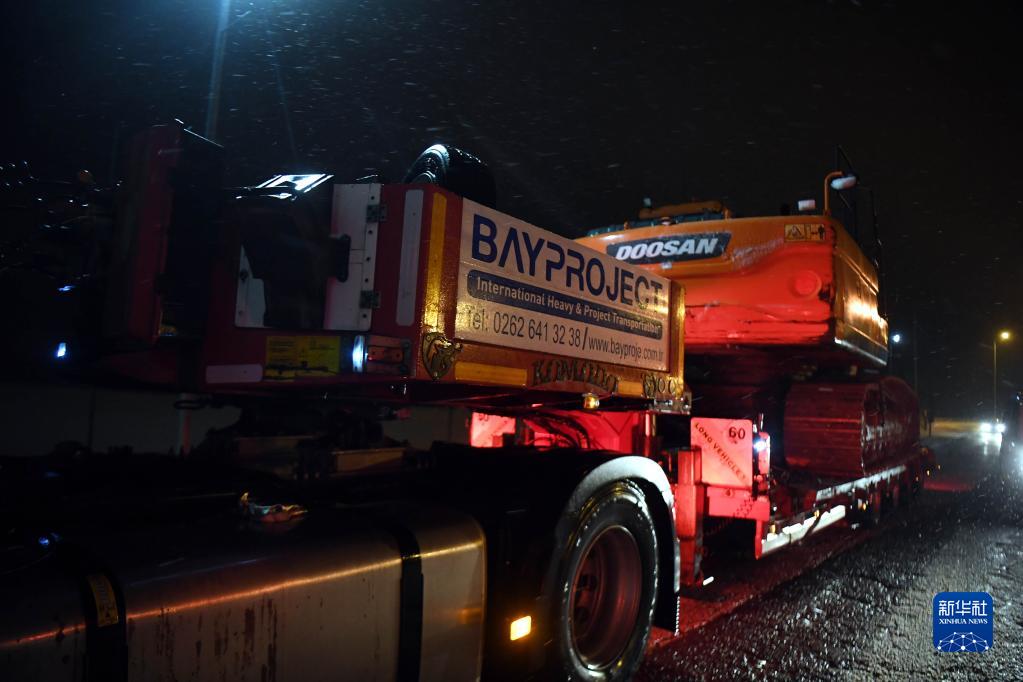 这是2月6日晚在土耳其伊斯坦布尔至安卡拉公路上拍摄的运往灾区的大型机械。 土耳其灾害与应急管理署7日发布的最新统计数据显示,6日发生在土耳其的强烈地震已造成该国3381人死亡、两万余人受伤。 新华社记者 沙达提 摄