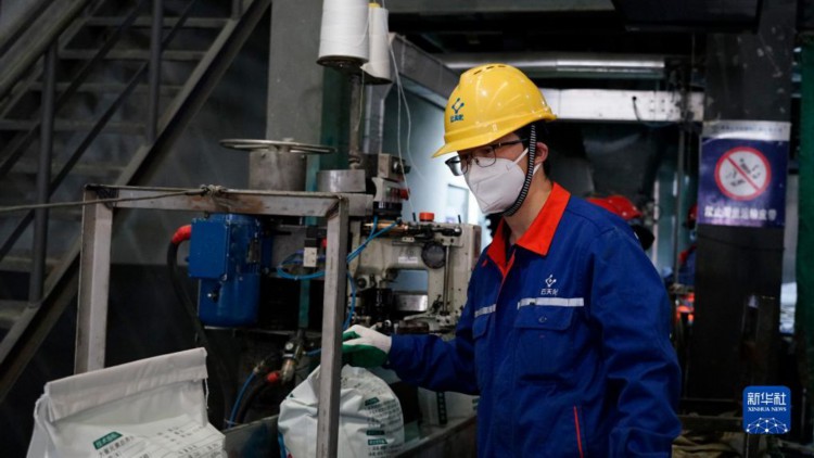 2月8日,在青海云天化国际化肥有限公司,工作人员在检查产品质量。