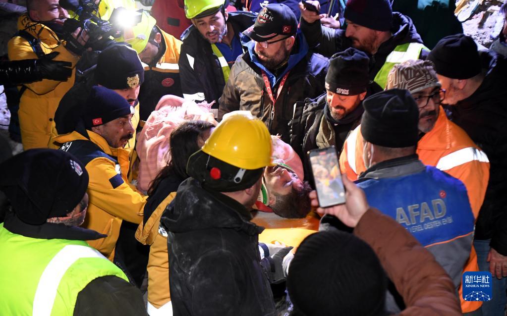 2月7日晚,在土耳其卡赫拉曼马拉什省南部的埃尔比斯坦地区,救援人员转移地震废墟中的幸存者。 土耳其副总统福阿德·奥克塔伊8日凌晨表示,土耳其境内地震死亡人数升至5894人,另有34810人受伤。 新华社记者 沙达提 摄 |