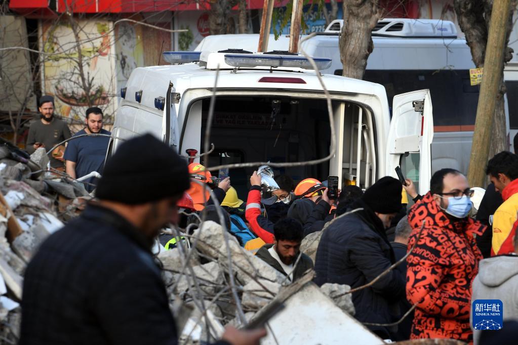 2月10日,在土耳其哈塔伊省安塔基亚市,救援人员将获救的幸存者送上急救车。 土耳其卫生部长科贾10日午夜说,土耳其南部靠近叙利亚边境地区6日发生的强烈地震已在土造成20213人死亡、80052人受伤。科贾说,在受灾的10个省份中,哈塔伊省灾情最为严重,地震死伤人数分别为6205人和17823人。 新华社记者 沙达提 摄 |